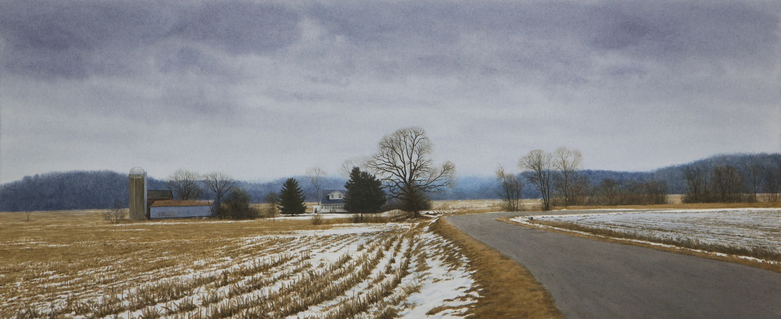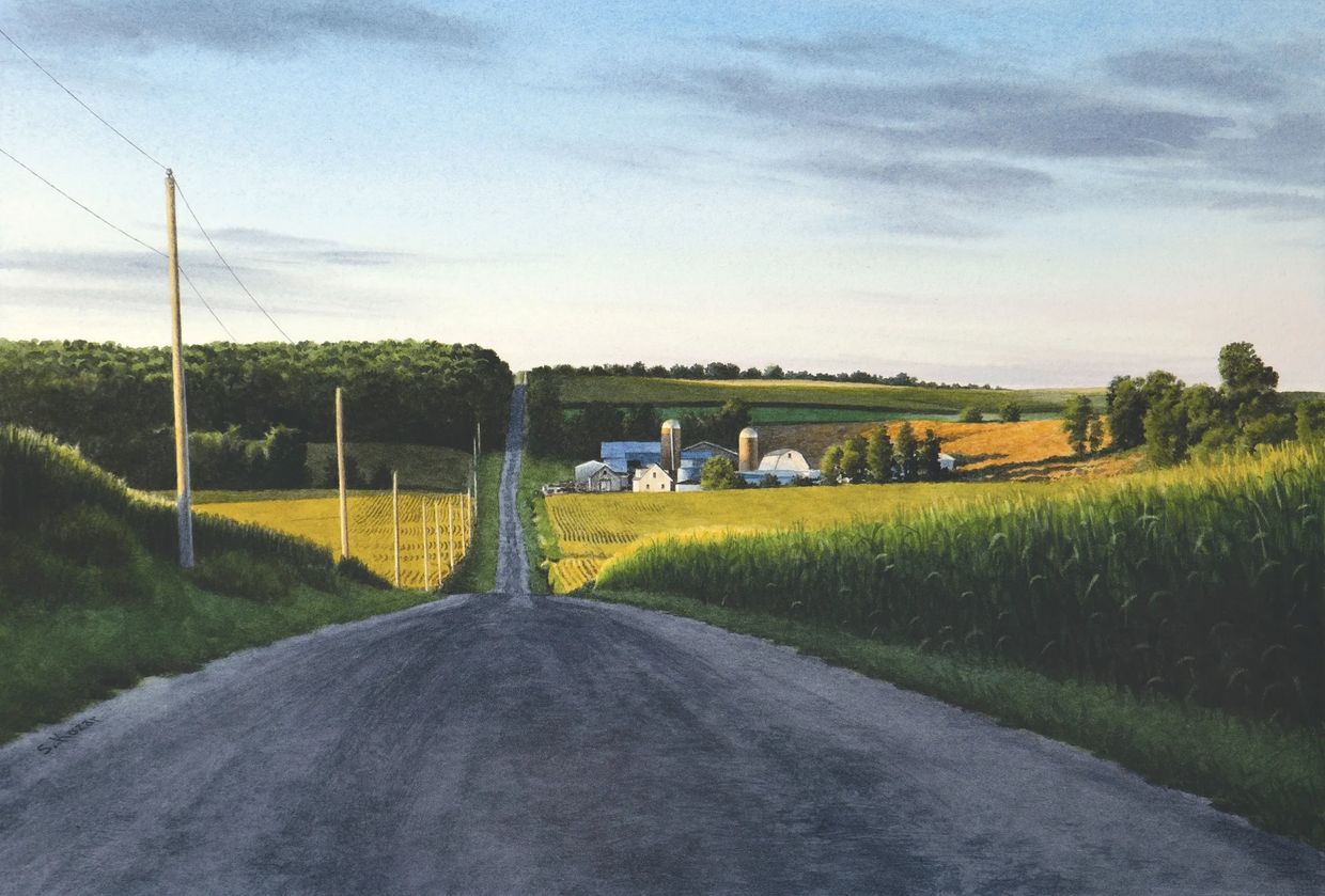 "This is an atmospheric rendition of a southcentral Wisconsin landscape on an ordinary, somewhat dreary, day. I enjoyed the challenge of capturing the feeling of this scene without going into extreme "'photorealistic' detail as I often do in many of my other paintings.