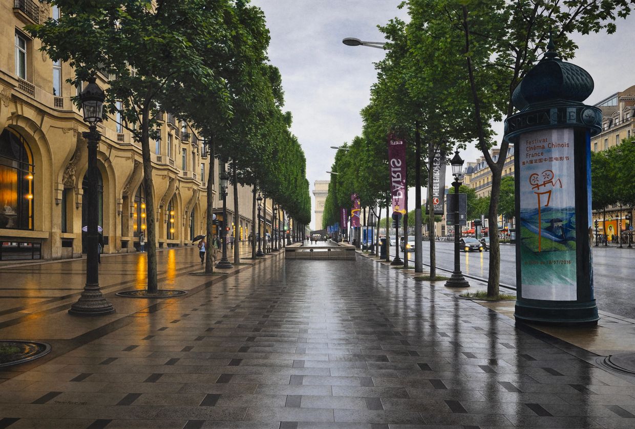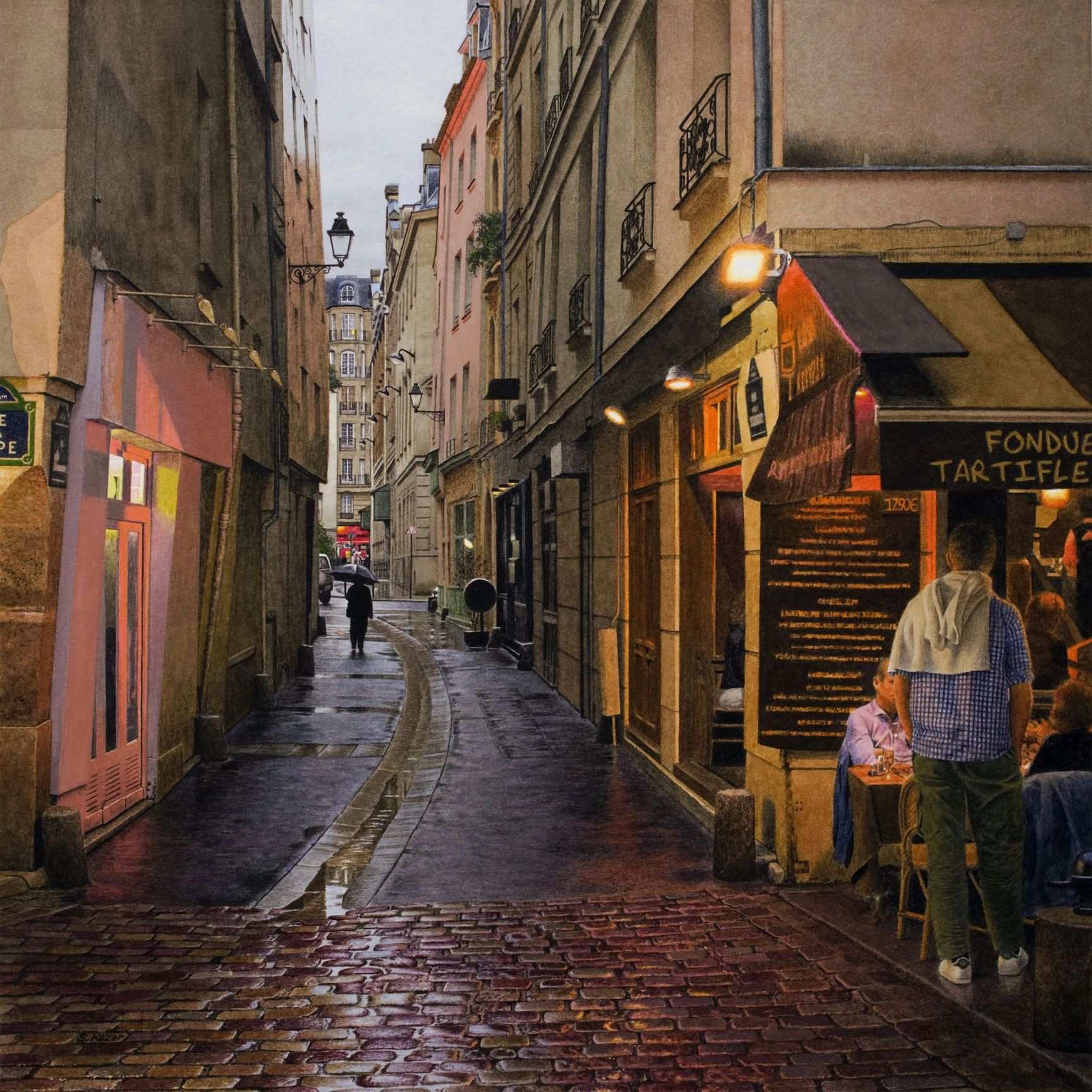 "On my very first day in Paris it rained at dusk and I could barely contain my excitement! This is the very first painting from that time. This was a much more difficult and tedious painting than even I imagined, but after almost four months of work I am thrilled with the end result!" -Steven Kozar
